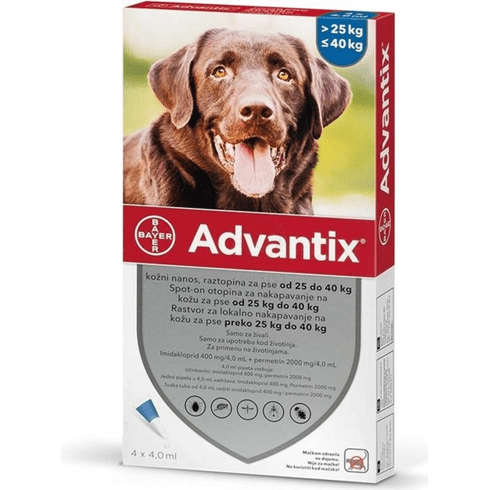 - za pse preko 25kg – Advantix 400 mg (4,0 ml) Spot-on