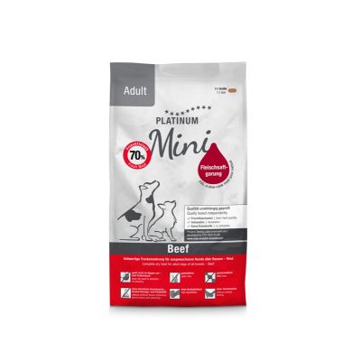 PLATINUM je sočna suva hrana. To je zato što se za 1kg Platinum sočne hrane upotrebi 1,27kg svežeg otkoštenog mesa. Miriše na meso – ima ukus mesa. Vaš pas će je obožavati.
